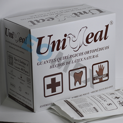GUANTE ORTOPEDICO DE LATEX TALLA 8, LIBRE DE POLVO (MICROTEXTURIZADO) COLOR: CAFE